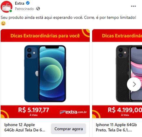 Por isso indicamos que você teste versões da mesma campanha para descobrir qual tem o melhor desempenho. Use uma das peças como modelo principal e na segunda, altere um elemento por vez: texto, imagem, CTA ou o formato. Dessa maneira, saberá o que fez diferença para o seu público e poderá replicar o aprendizado nos próximos anúncios.