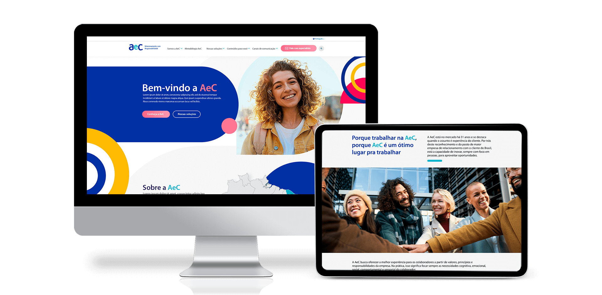 A AeC é uma empresa de tecnologia que atua na área de relacionamento com clientes e outsourcing de processos de negócio (BPO). Possui quase 30 anos de mercado e nos procurou para transformar sua presença digital através de um novo site institucional.