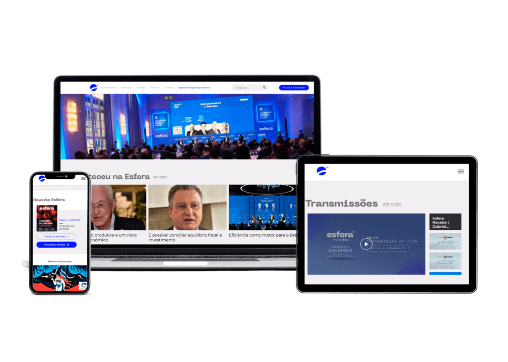 Plataforma editorial desenvolvida para a Esfera Brasil, uma organização criada por um grupo de empresários brasileiros que promove a discussão sobre empreendedorismo, política e outros assuntos relacionados.