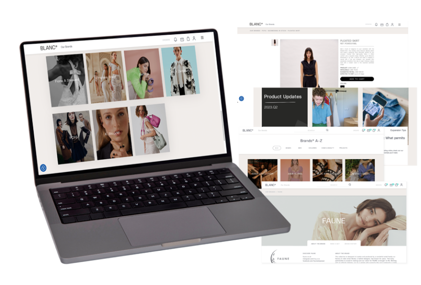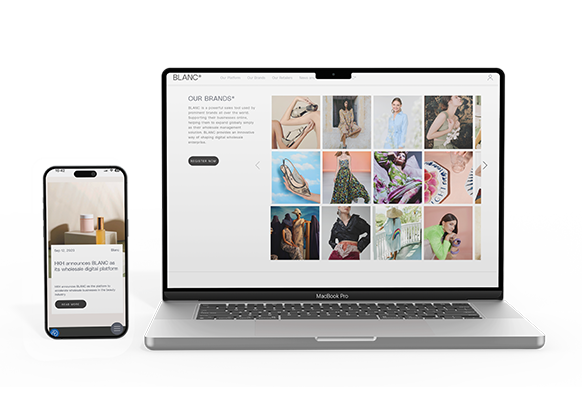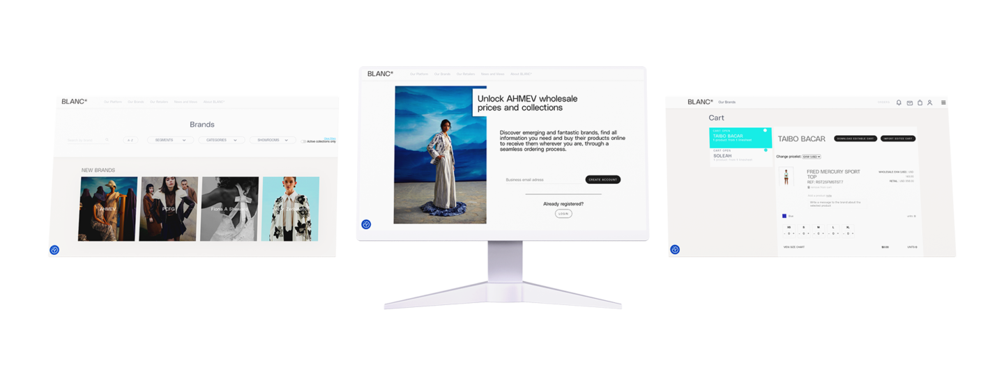 A BLANC* é uma startup inglesa que desenvolveu uma plataforma para conectar marcas de moda e beleza a varejistas do mundo todo promovendo vendas em atacado. Nela, as marcas publicam suas coleções e os varejistas entram em contato para obter os produtos em atacado e revender aos seus clientes locais.